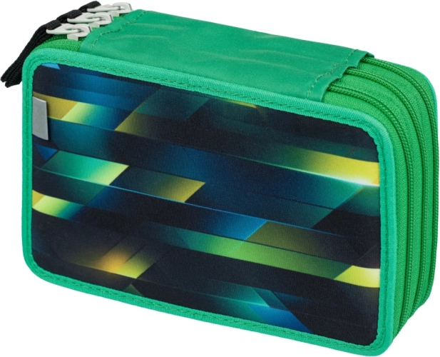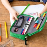 Tre-etagers skol penal med design af en fodbold tilbyder ekstra plads til alle skriveartikler, inklusive stærke farveblyanter og markører, takket være tilpassede elastikker. Den er udstyret med kvalitets lynlåse og har en forstærket ryg for nem håndtering.