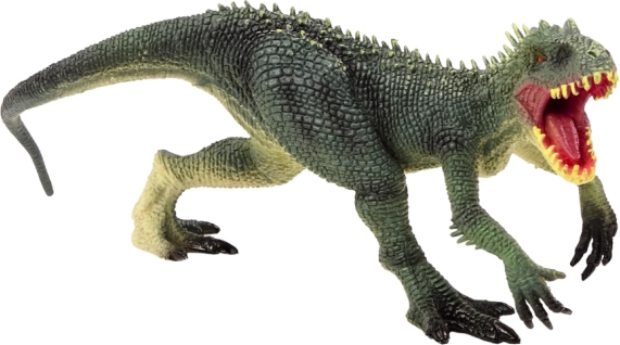 Realistisk PVC-figur af dinosauren giganotosaurus – grøn. Holdbar, detaljeret, med CE- og EN71-certifikater. Mål 17,5 × 8,5 × 5,5 cm. Alder 3+.