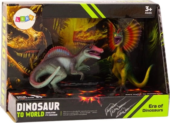 Oplev den forhistoriske verden med et sæt realistiske figurer af spinosaurus og dilofosaurus. Detaljeret udførelse, naturtro hudtekstur og naturlige farver gør dem til et fremragende valg for både børn og samlere. Fremstillet af holdbart og sikkert PVC, med CE-certificering og EN71-standard, ideelt til børn fra 3 år.