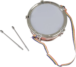 Børnetromme med trommestikker er en fremragende tilføjelse til enhver ung musiker. Med en farverig rem over skulderen og to trommestikker bliver det et ideelt musikinstrument på farten. Med trommen kan børn blive en del af et marcherende band eller spille på den derhjemme.