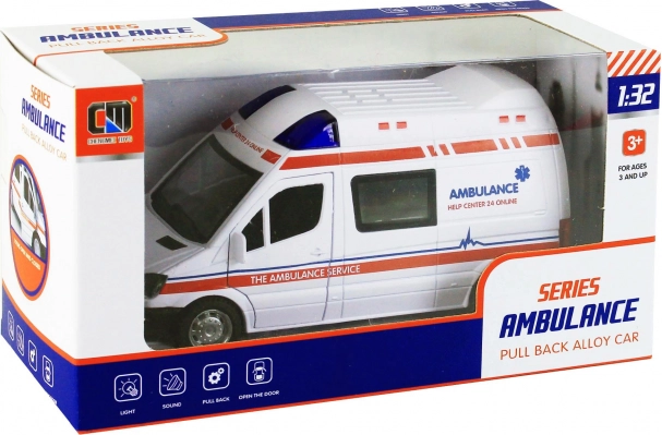 Enestående ambulance legetøj, der vil fascinere ethvert barn. Den er lavet af holdbart metal og efterligner en virkelig redningstjeneste med realistiske detaljer som lyd- og lyseffekter. Side- og bagdørene åbner, hvilket øger legetøjets interaktivitet.