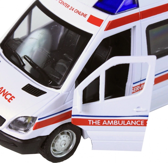 Legetøjet efterligner en virkelig ambulance med autentisk design inklusive markante lys og lyde.