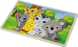 Sødt træpuslespil med dyr, der vil glæde enhver lille opdagelsesrejsende. Indeholder 8 brikker med livlige farver og glade illustrationer, som understøtter finmotorik og fantasi.