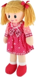 Med denne bløde stofdukke får dit barn ikke kun en smuk legetøj, men også en perfekt ledsager til rolig søvn. Dukken er lavet af kvalitetsmaterialer, som ikke kun er bløde, men også behagelige at røre ved og velegnede til børns hud. Takket være dens størrelse på 40 cm er den ideel til kram og fælles søvn.