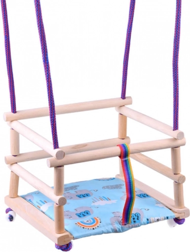 Gyngen inkluderer et blødt sæde (pude).