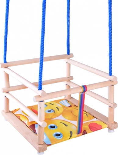 Sikkerheden sikres af en sikkerhedsrem, der beskytter barnet mod at falde ud af gyngen.