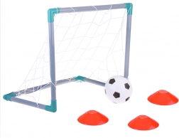 Indeholder alt nødvendigt: mål, net, pumpe, gummibold, flag og plastkegler.