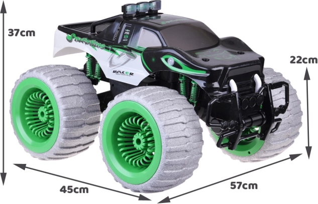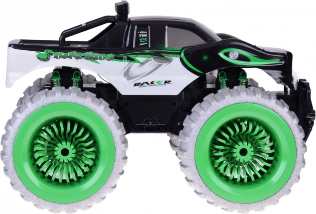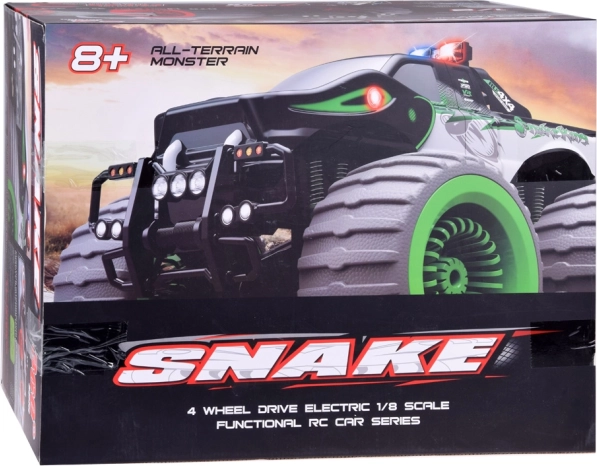 Monster Snake er en massiv RC‑monstertruck i skala 1:8, der klarer både terræn og skarpe sving. Den dobbelte 390‑motor, den robuste PVC-karrosseri og de store EPP-hjul med 22 cm i diameter sikrer stabilitet, trækkraft og modstandsdygtighed ved stød. Belysning og lydeffekter giver hvert kørselsøjeblik et show.