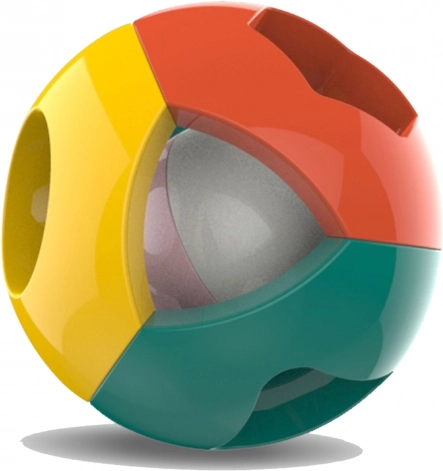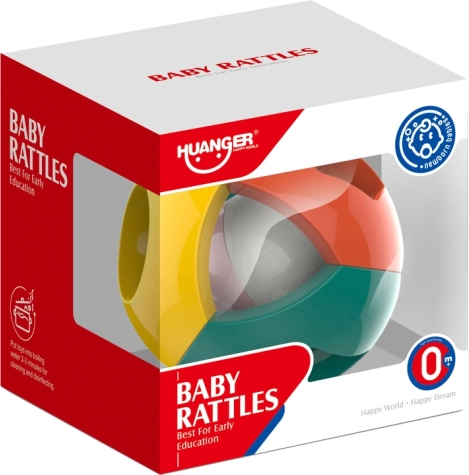 En glad raslebold til de allermindste, der støtter udviklingen af sanser, greb og øje–hånd-koordination. Let, nem at holde og sikker takket være afrundede kanter. Indeni gemmer der sig en lille kugle, som rasler behageligt ved bevægelse, og på siderne er der huller i form af geometriske figurer til sjov opdagelse. Velegnet fra 0 måneder, med CE-certificering og i henhold til EN 71.