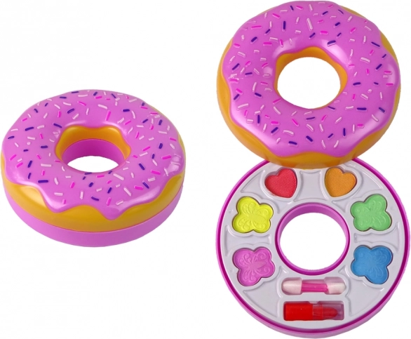 Børne-øjenskyggepalette formet som donut med læbestift