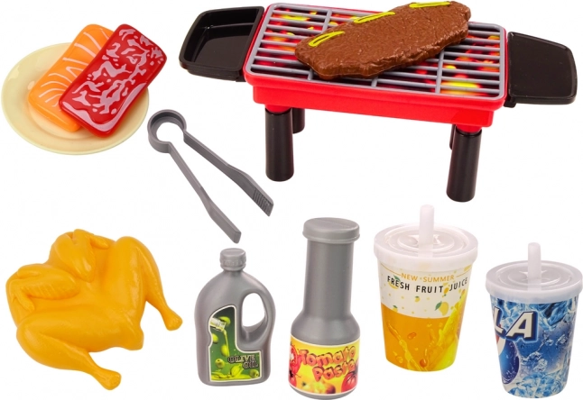 Oplev grillens magi med dette børnegrillsæt, som indeholder en realistisk grill med flammeeffekt og et bredt udvalg af mad – fra spyd og pølser over bøffer til fisk, rejer og grøntsager. Tilbehør som ketchup, sennep, olie og krydderier gør legen autentisk, og børnene kan lege værter for deres egen BBQ-fest.