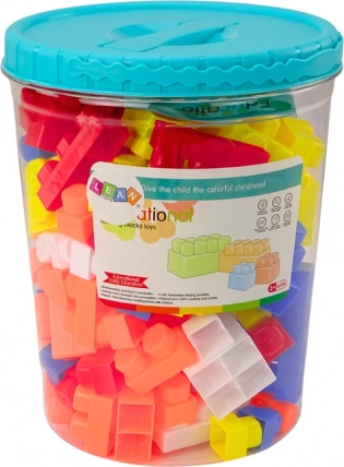 Udvikl børns fantasi og færdigheder med et alsidigt byggesæt på 160 dele i en praktisk lukkbar spand med håndtag. Forskellige former og livlige farver fremmer kreativiteten, mens klistermærker med bogstaver og tal gør læringen sjov. Inkluderer en mini-hæfte med byggeidéer. Sikkert materiale, nem vedligeholdelse og CE-, EN71-certificering.