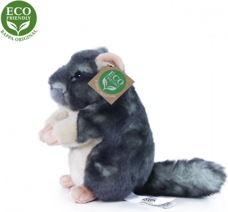 En plyschinchilla på 15 cm er lavet af højkvalitets plyss og er miljøvenlig takket være fyld af genanvendte PET-flasker. Denne charmerende figur er ideel som gave!