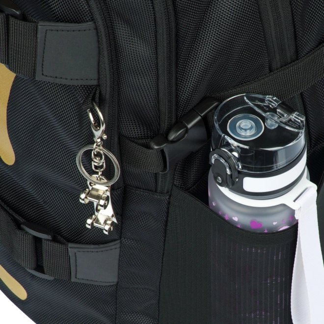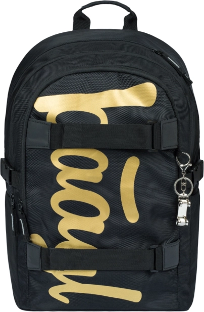 Stilfuldt skolesæt Baagl Skate Gold indeholder rygsæk, penalhus, gymnastikpose, mappe til hæfter og pung. Det tilbyder ergonomisk design og praktiske funktioner for en komfortabel og sikker skoledag.