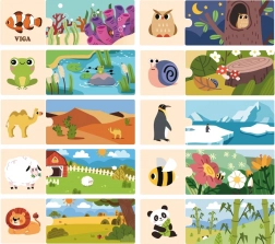 Disse logikpuslespil fra mærket VIGA er et ideelt værktøj til udvikling af barnets logiske tænkning og fantasi. Spillet består i korrekt samling af 20 farverige stykker, der tilsammen danner billeder af dyr og deres naturlige miljø. Hver brik er omhyggeligt lavet af træ, dækket med ikke-giftig maling, hvilket sikrer lang levetid og sikkerhed for børn.
