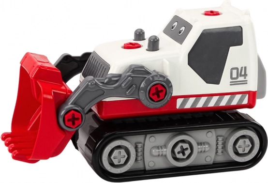 Denne tegneserieinspirerede bæltegraver med bred skovl introducerer børn til teknik og mekanik. Med en bevægelig og justerbar skovl føles legen realistisk, og børn kan efterligne rigtige byggeopgaver. Den robuste plastkonstruktion i hvid‑rød farve er attraktiv og holdbar til daglig leg.