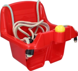 Praktisk og sikker plastikgyngestol til børn for de mindste op til 3 år. Takket være den lette konstruktion og enkle ophængning er den ideel til have, altan og indendørs. Sikkerhedslås, lav vægt og nem installation sikrer behagelig og glædesfyldt gyngetid.