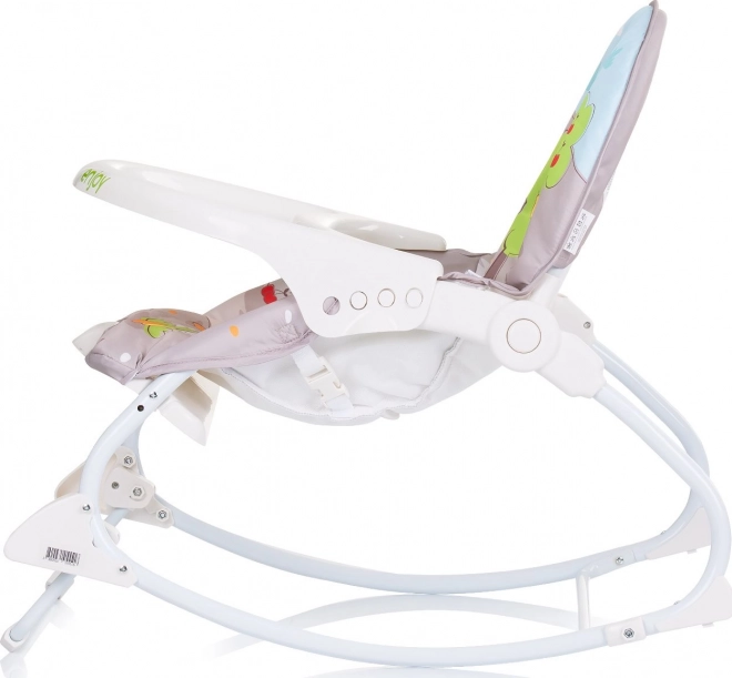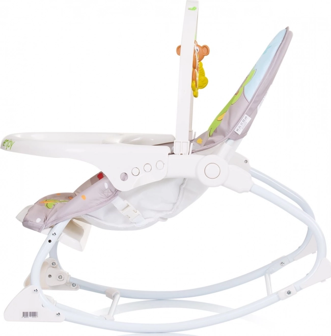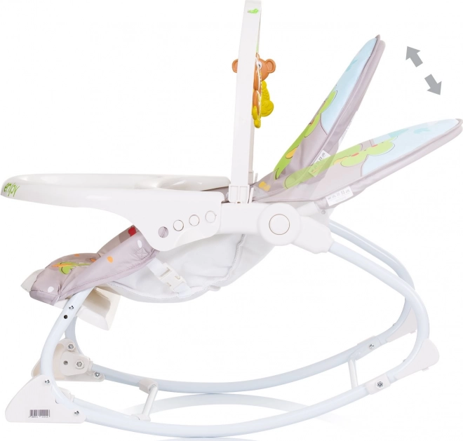 Børnegynge-stolen Enjoy dinosaur giver babyen ro og underholdning i ét. Kombinationen af melodier og blide vibrationer hjælper med at lulle i søvn og berolige, mens legetøjsbøjlen med legetøj understøtter sanseudvikling og motorik. Takket være to ryglænsindstillinger tilpasser du nemt positionen til både hvile og leg.