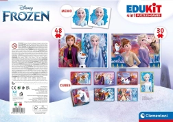 Oplev FROZENs magiske verden med et alsidigt spilsæt, der styrker finmotorik, koncentration og hukommelse. De to puslespil har samme færdige mål 24 × 17 cm, men forskelligt antal brikker, så børnene gradvist kan øge sværhedsgraden. Vendespillet træner den visuelle hukommelse, og de 6 plastterninger tilbyder endnu en sjov lægge-variant med populære motiver.