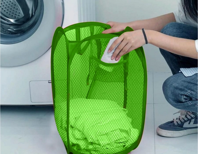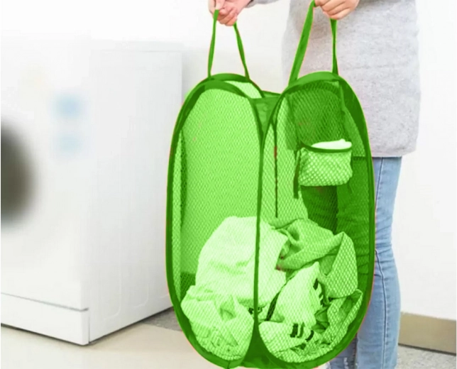 Let og luftig sammenklappelig kurv i net er ideel til daglig brug hjemme og på rejser. Takket være pop-up konstruktionen kan den hurtigt foldes ud og nemt klappes fladt sammen, så den sparer plads. Den rummelige kapacitet på ca. 65 l og de praktiske bærehanke gør den til et fremragende valg til vasketøj, legetøj, sko og sengetøj. Åndbart netmateriale sikrer luftcirkulation og reducerer lugt.