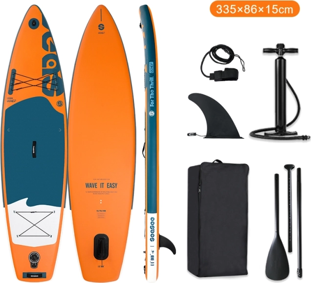 Gennemtænkte detaljer øger komforten på vandet og på land: skridsikker EVA-måtte for et sikkert fodfæste, højtryksventil til hurtig oppumpning til de anbefalede 15 PSI, aftagelig finne for bedre retningsstabilitet og stærke nylonhåndtag for nem transport.