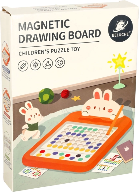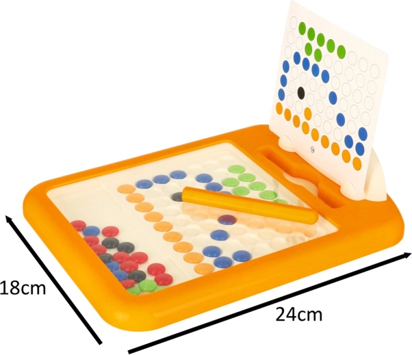 Denne smarte magnettavle gør læring til leg. Med den magnetiske pen flytter barnet farvede kugler rundt på gitteret og skaber mosaikker efter skabeloner eller egne idéer. På en legende måde træner det præcision, koncentration og logisk tænkning.