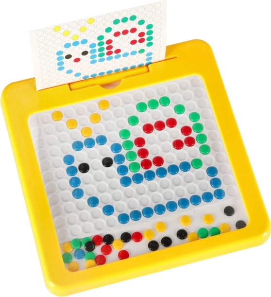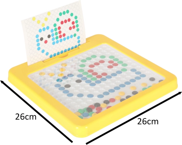 Den stabile plastikramme i en klar gul farve og de kompakte mål gør den nem at bruge både hjemme og på farten. Mosaikken udvikler naturligt kreativitet, finmotorik, logisk tænkning og visuel perception. Fælles skabelse er samtidig en fantastisk aktivitet til familietid.