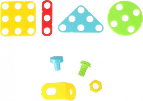 - Alsidigt sæt med 285 dele: skruer, bits, dele i forskellige former, forbindelsesstykker, værktøj og dekorative kort.