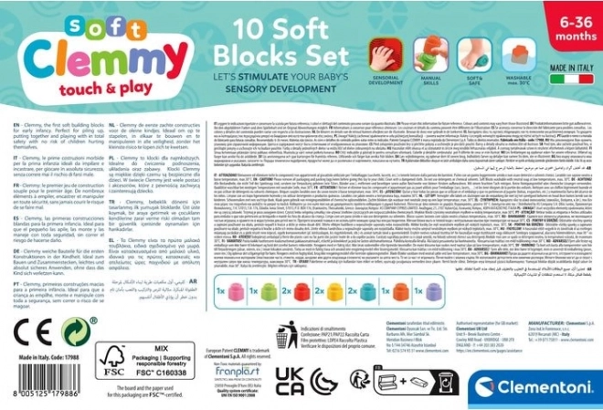 Bløde og sikre klodser BABY CLEMENTONI til børn fra 6 måneder. Udvikler færdigheder og er nemme at rengøre.