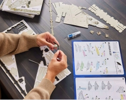 De 223 dele trykkes nemt ud af arkene; den medfølgende lim og den klare vejledning hjælper dig med at samle modellen uden specialværktøj.