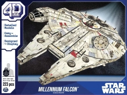 Nyd at bygge det legendariske rumskib Millennium Falcon med autentisk panelstruktur, tårne og cockpit. 4D Build-sættet indeholder alt, du behøver – tryk delene let ud af arkene, lim dem sammen med den medfølgende lim, og placer den færdige model på den elegante stander med STAR WARS-logo.