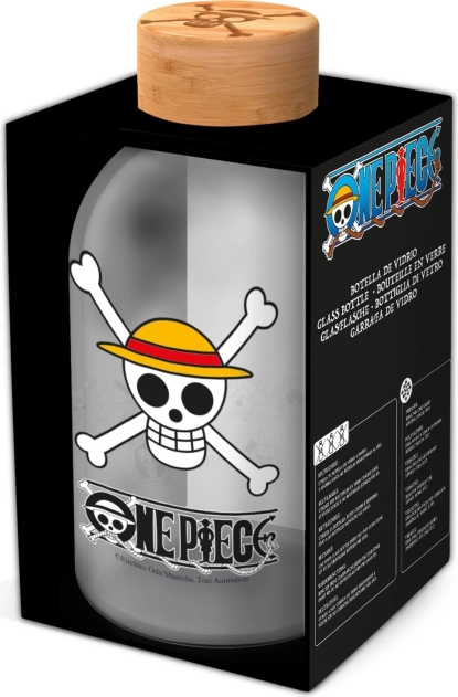 Elegant glasflaske med motiv fra den populære serie One Piece med en kapacitet på 620 ml, ideel til daglig hydrering. Holdbart borosilikatglas og praktisk skruelåg sikrer lang levetid.