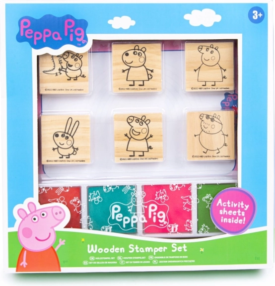 Det træsæt med stempler Peppa Gris er et fremragende valg til børn, der elsker at skabe. Med motiver af populære figurer som Peppa og hendes venner kan børn lave glade og farverige aftryk på papir eller andre materialer.