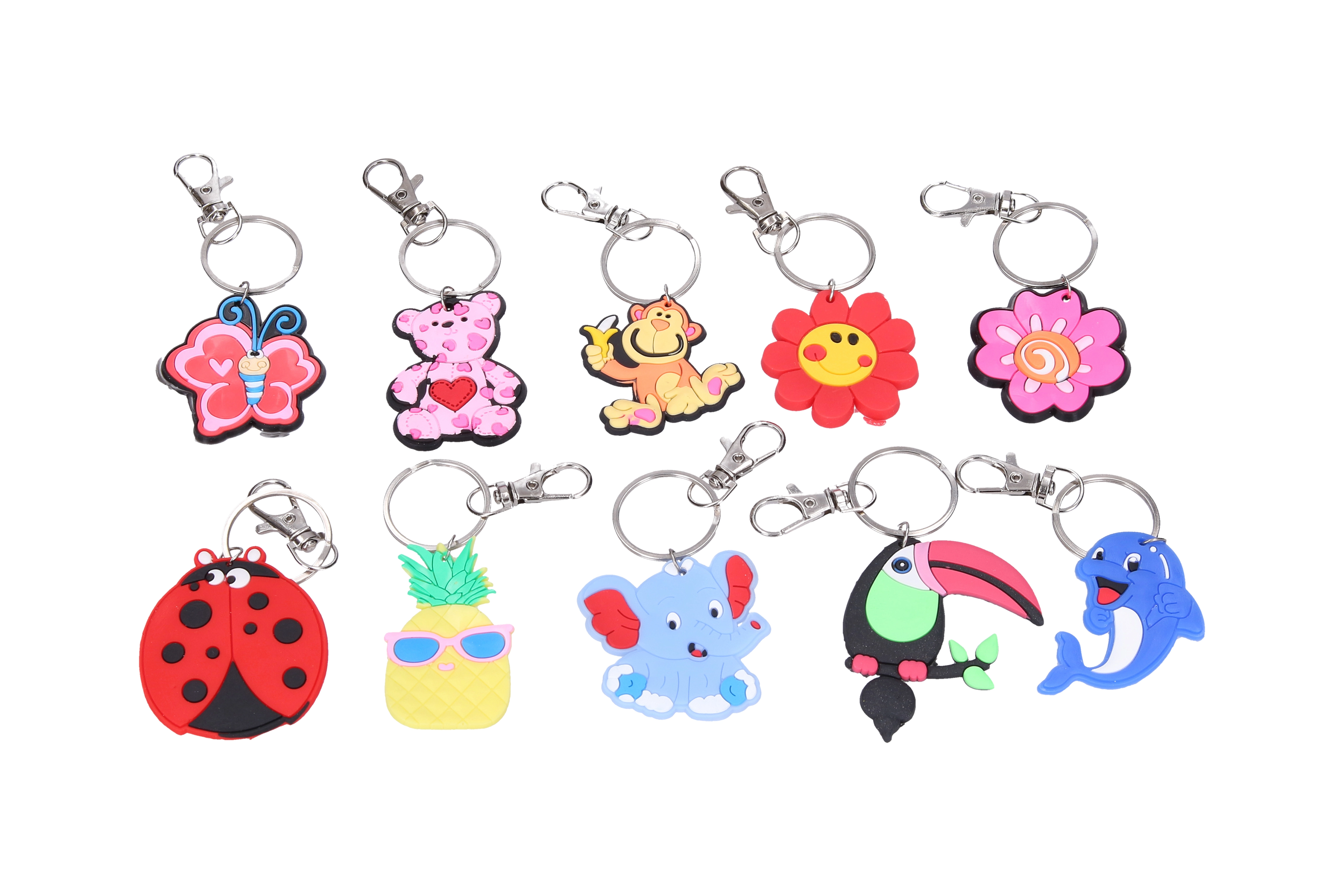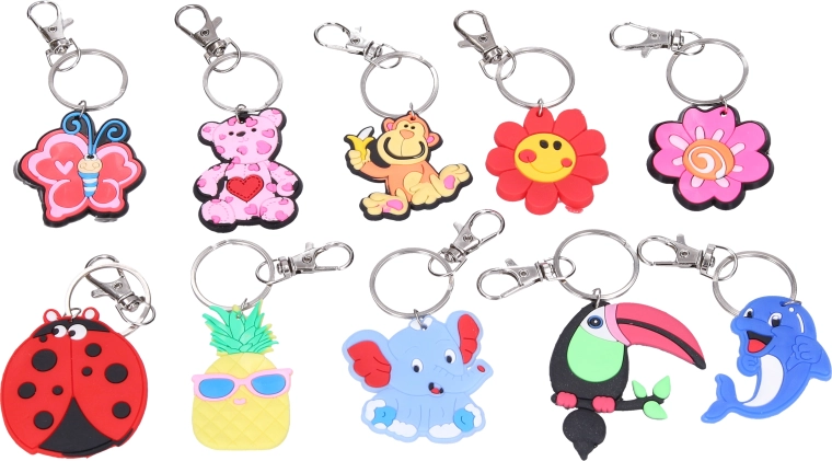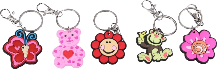 Stilfuld nøglering i blandet udvalg af motiver til hverdagsbrug. Et praktisk tilbehør til nøgler, rygsæk eller taske, som giver personlig stil og overblik over dine nøgler.