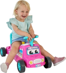 Sødt lyserødt ride-on i stil med en isbil, der udvikler motorik og fantasi. Tilbyder musik og blinkende lys, horn og rat, opbevaringsrum under sædet og bagtilligt håndtag som støtte ved de første skridt.