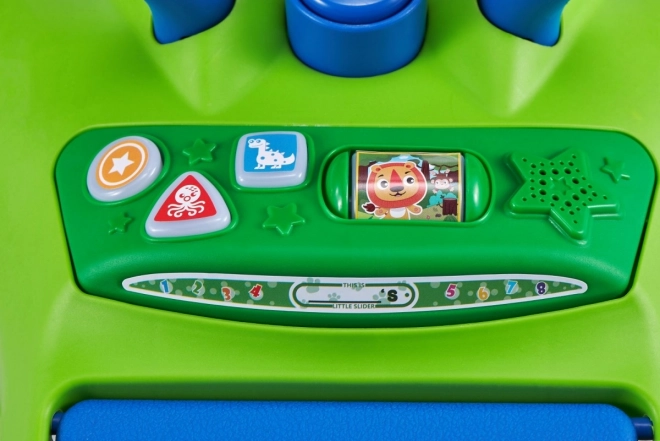 Små kørere vil blive glade for hornet og den hemmelige boks under sædet til deres skatte. I pakken finder du også et interaktivt panel, der afspiller musik og muntre lyde, hvilket støtter udviklingen af finmotorik og sanseopfattelse. Den robuste plastkonstruktion med afrundede kanter er designet med fokus på sikkerhed.