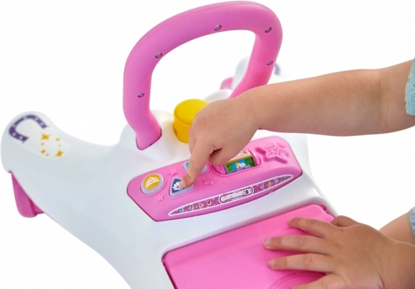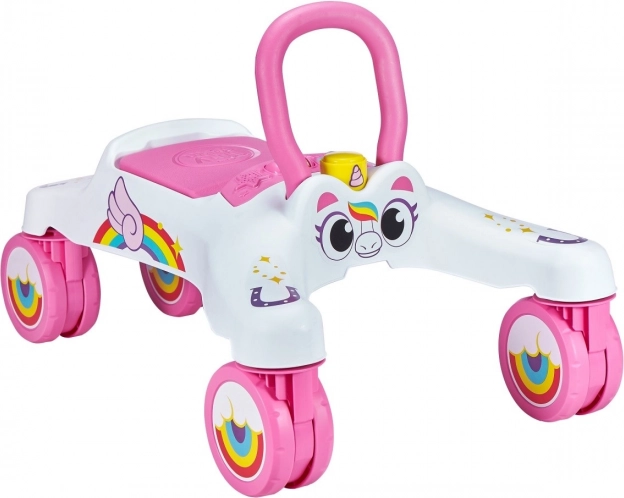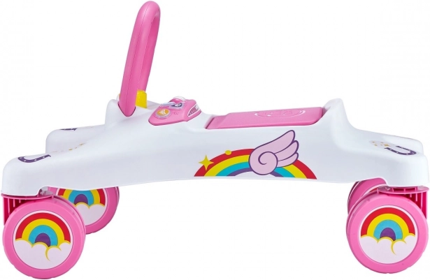 Det interaktive løbekøretøj med enhjørningetema giver børn masser af sjov og støtter udviklingen af motorik og balance. Den firehjulede base og solide udførelse giver tryghed ved hver tur, mens 360° drejehjul gør det let at manøvrere både inde og i haven.