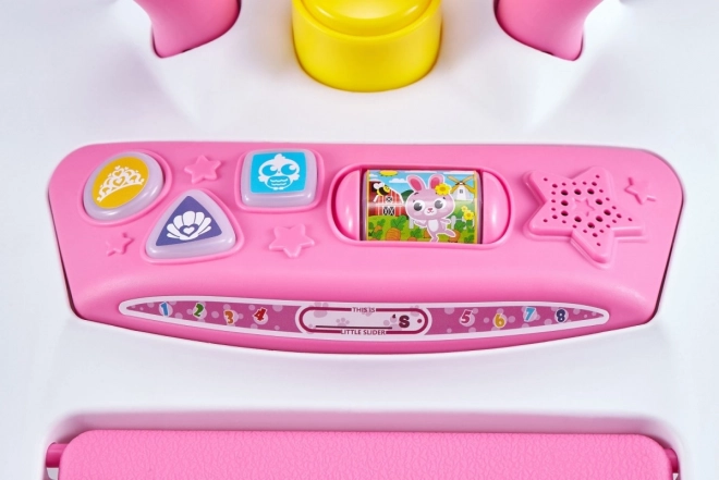 Farverige knapper og en rulle med dyremotiver afspiller melodier og lyde, som understøtter sanseudvikling og finmotorik.