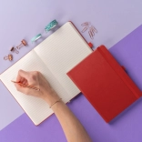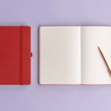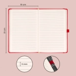 Noteshæfte i en smuk rød farve med linjeret format i størrelsen 15 x 21 cm, som bringer en perfekt kombination af klassisk stil og elegance. Ideelt til personalisering med firmalogoer takket være den fine overfladestruktur.