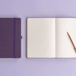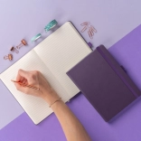 Linjeret notesbog Aprint Neo i lilla tilbyder en kombination af klassisk stil og elegance. Dens overflade er ikke blot den mest efterspurgte, men muliggør også nem prægning af firmalogoer med en fin struktur.