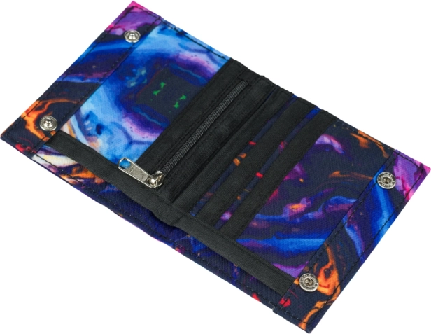 Denne studenterpung er et ideelt valg til skole og fritid. Takket være lukningen med to trykknapper forbliver indholdet sikkert på plads, mens den separate møntlomme med lynlås holder småpenge overskuelige uden risiko for at falde ud.