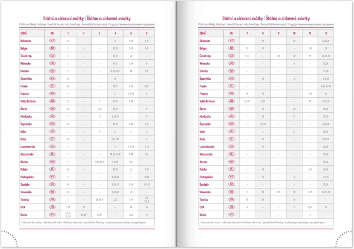 - Rigt indhold: helligdage CZ/SK, internationale helligdage, udvidet liste over tjekkiske navne, kort over CZ og SK.