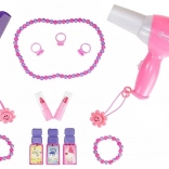 Børn kan lege med hårtørrer, kam, parfumeflakoner, perler, armbånd, ringe og mange andre tilbehør.