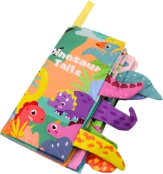 Udforsk de udstående dinosaurhaler, som giver bogen taktilitet og støtter den sansemæssige udvikling.