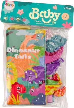 Oplev magien ved dette farverige tekstil-leporello fuld af dinosaurer. Hver side er rigt illustreret og giver både en visuel og taktil oplevelse takket være de udstående dinosaurhaler, som understøtter børns sanseudvikling. Børn kan også lære engelske ord via dinosaurnavnene angivet på siderne.