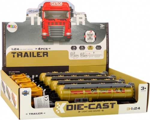 Realistisk cisterne-sæt 1:24 med lys, lyde og aftagelig trailer. Drift for selvstændig bevægelse, CE/EN71-certificeret. Til børn 3+.