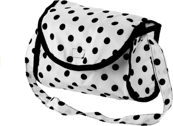 Håndtaget kan justeres fra 36 til 68 cm. I pakken er der en stilfuld taske i matchende design til små dukketilbehør.