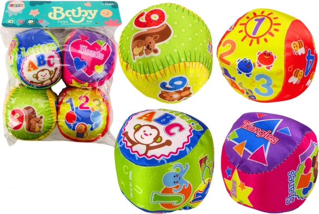 .Sæt med 4 bløde bolde til børn er et lærende og interaktivt legetøj, der kombinerer læring og leg. Hver bold i sættet har unikke motiver, som understøtter læring gennem leg. Farverige illustrationer af dyr og tal hjælper børn med at lære at tælle og genkende forskellige dyr. En bold med illustrationer af grundlæggende geometriske figurer, hvor hver er navngivet på engelsk, introducerer børn til sprog og geometri. Bogstaver i alfabetet dekoreret med dyrebilleder gør det let og sjovt for børn at lære bogstaver og deres lyde.