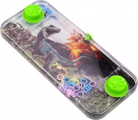 Det lommevenlige vandspil med motiv af dinosaure n Carnotaurus er enkelt, men vanedannende. I den klare vandbeholder svæver farvede ringe frit, og din opgave er ved hjælp af to grønne knapper at dosere trykket præcist, så ringene sættes på to tappe indeni.