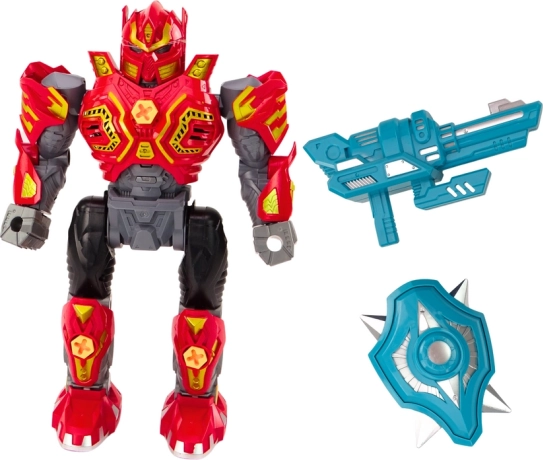 Det turkise skjold og våben forvandler robotten til en helt klar til missioner. Børn udvikler kreativitet og fortælleevner.